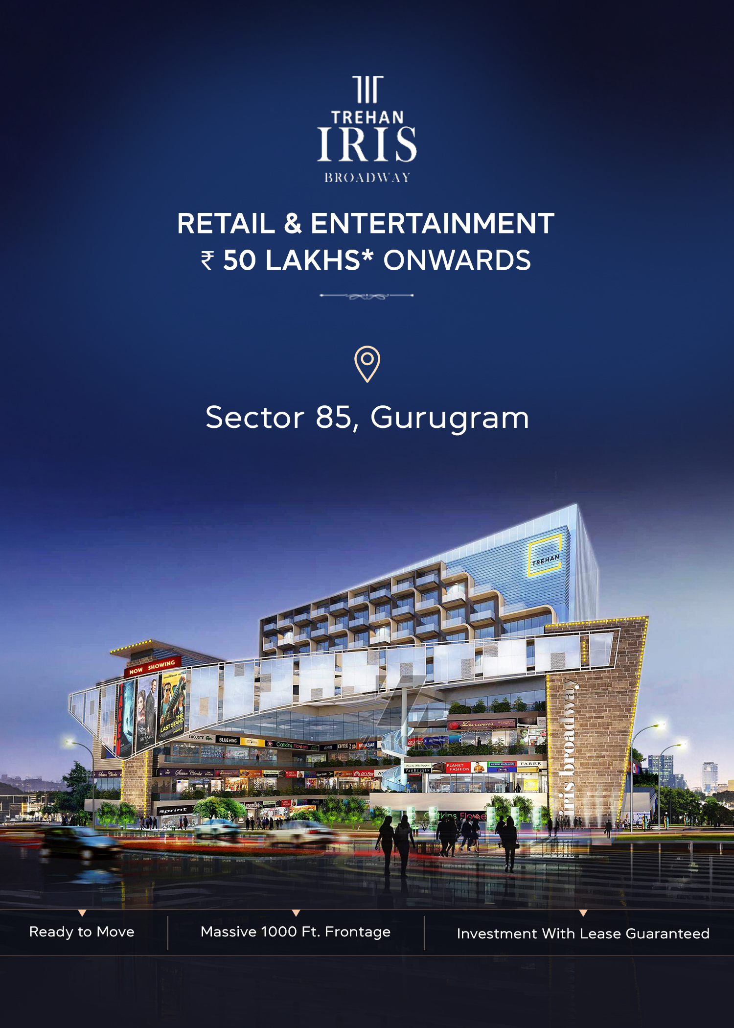 Iris Broadway Sector 85 Gurgaon is a top-notch commercial destination developed by Trehan Group. Designed to offer a premium shopping and business experience, this project features high-end retail spaces, offices, and entertainment zones. With modern infrastructure and strategic connectivity, it is a perfect investment for business owners and investors.